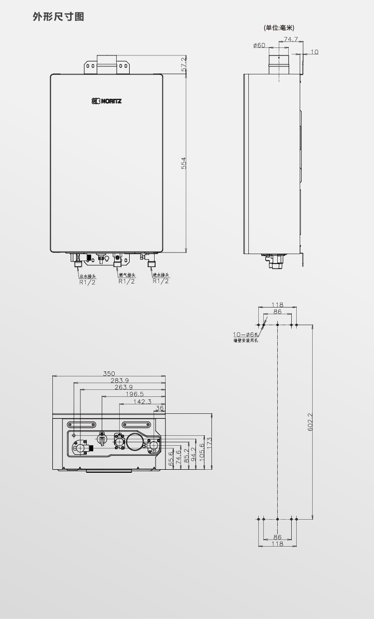 外形尺寸(mm) :高554×寬350×深173